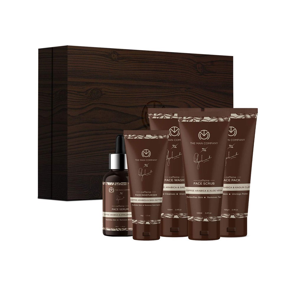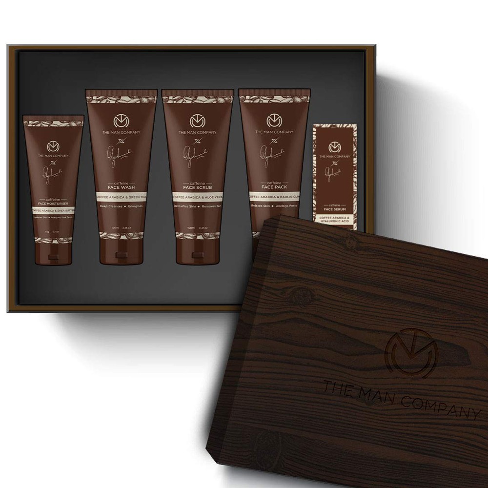 The Man Company Caffeine Grooming Kit Packed In Elegant Wooden Gift Box | Face Wash, Face Scrub, Fac
